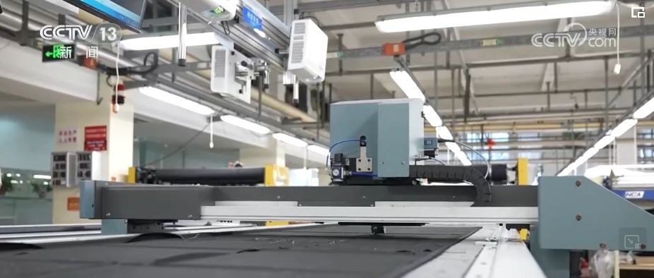 在这家高定服装生产车间,这套电脑自动裁剪信息化智能设备可以让裁剪效率提升四倍,仅用7分钟就可以完成一套定制西服的前端面料剪裁。