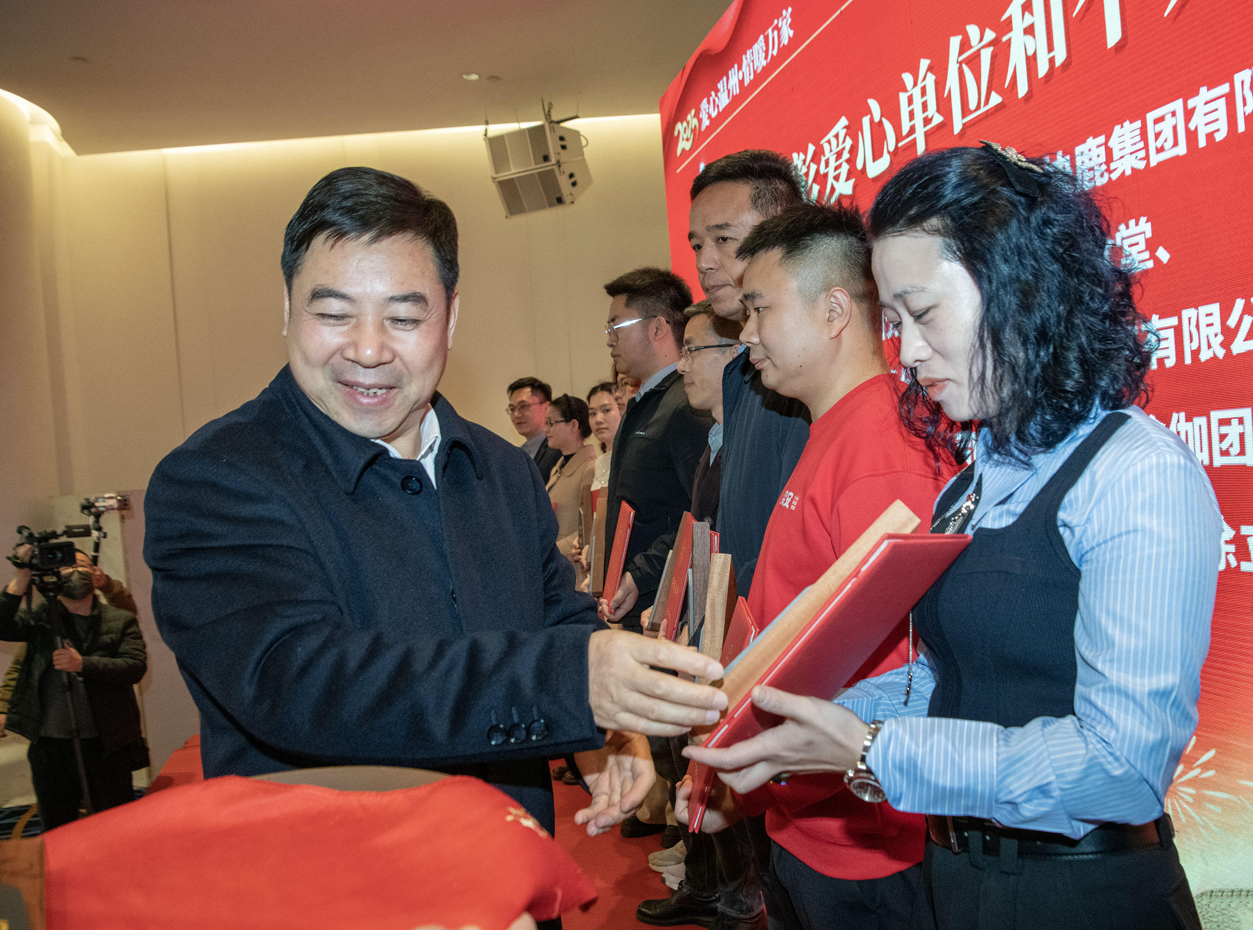 慈善大宴23年来的爱心延续与传承壮大,凝聚着市委市政府一如既往地关心与支持,凝聚着爱心企业、爱心人士和社会团体的温暖接力。活动现场,温州市委常委、常务副市长王军,温州市人大常委会副主任张洪国,温州市人民政府副市长章月影,温州市政协副主席马永信等领导共同为90多个爱心单位和个人颁发荣誉证书和奖杯。