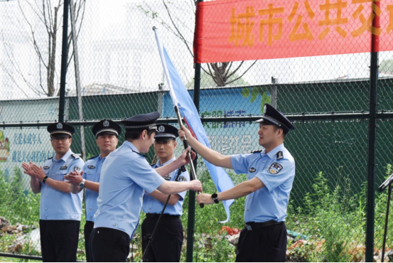 温州网讯 为护航市委市政府“强城行动”和开展市公安局“强城有我、争当先锋、最美温警青年”活动,加快形成和提升新质公安战斗力,2024年6月5日下午15:00,温州市公安局城市公共交通分局组织100余名警力,走进市域铁路S1线龙霞站警企训练基地,共同举行“强城先锋队”授旗仪式,宣告轨道交通“强城先锋队”组建成立。