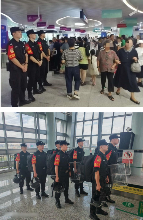 “强城先锋队”以迅速集结、火速赶往现场增援应急处置为最大优势,展现出青年民警反应快、活力强、干劲足的特点,是一支平时战备军和战时生力军。6月6日下午15时许,“强城先锋队”开展模拟拉练,轨道S1线动车南站出现短时“大客流”,经情指中心通报,请“强城先锋队”一分队出动增援。一分队长裘建接到指令后,迅速带领分队队员赶往现场支援,在站厅、非付费区、月台等处布警,引导客流有序通过,督导安检缴获了违禁品、限带品4件。
