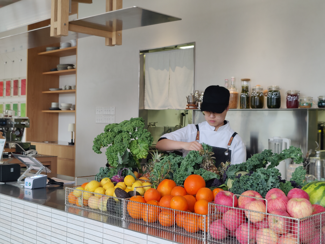 早后农场餐厅的品牌理念是用绿色的方式诠释生活,与自然共享每一餐。“把自然的、本土的风味用最自然的方式,用减法的方式,去呈现给客人。主打菜品是看当季出什么,现在这个季节,羽衣甘蓝成熟,番茄会成熟,我们的厨师团队就会去研发,让它以更少的调料去呈现这个菜本来的风味,因为我们是一个轻食餐厅,尽可能让大家吃得没有负担。”许蒙爱说道。