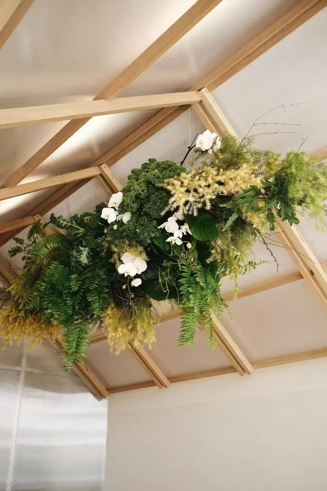 与此同时,餐厅内的装饰更是随处可见农场元素,从台面、墙面到餐桌间都点缀着各类香草果蔬,让人有拥抱自然的亲切感。据许蒙爱介绍,餐厅的整个设计理念也十分契合自然生活,“整体感觉是一种很健康、很天然的白色、绿色,然后一些木头本来的颜色,把餐厅里面与外面的界限模糊掉,让外面的自然风光嫁接到屋内来,别人都是用桌花布置,我们有用茴香、甘蓝、萝卜、油冬菜,这类菜品去做成一盆浓缩的花,放在那里也很漂亮。”