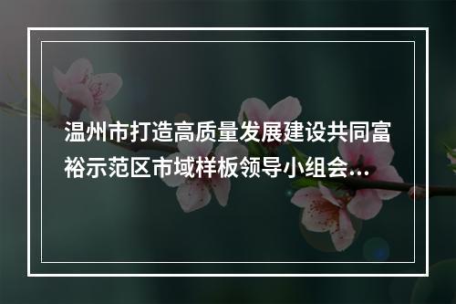 副省长王文序出席会议并讲话。市委副书记、市长张振丰致辞,并介绍温州低收入家庭综合帮扶集成改革做法。
